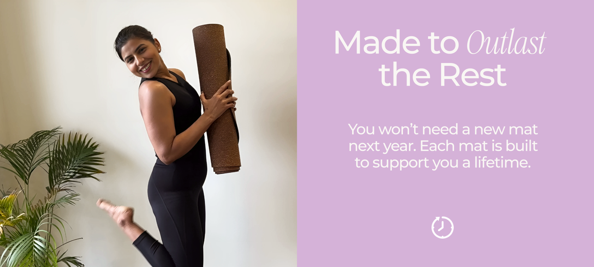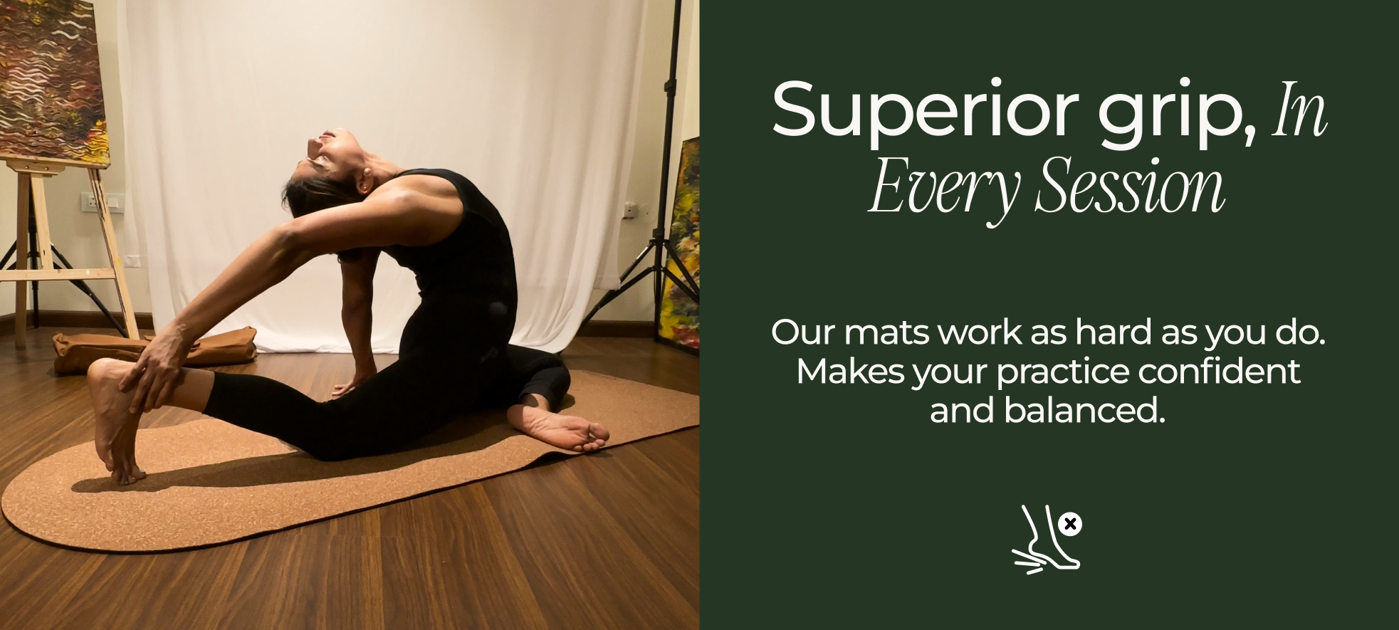 Our unique blend of cork and natural rubber makes the top layer of the mat extremely grippy for you to remain stable during intense sweaty yoga sessions.
