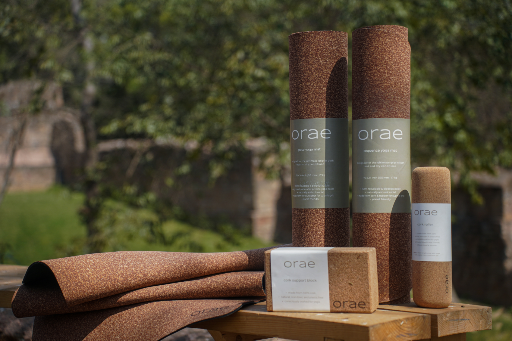 At Orae, functionality and sustainability are the heart of our products. We carefully select materials like cork and rubber for our yoga mats and props, valuing their performance and remarkable eco-friendly properties. Cork, harvested from the bark of cork oak trees, is one of nature's most sustainable resources. Rubber, derived from latex sap, is equally sustainable.